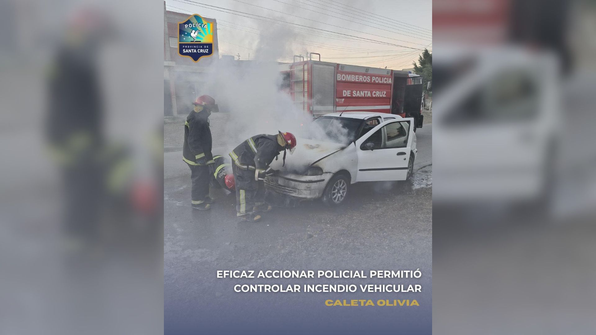 Personal del Comando de Patrullas de Caleta Olivia intervino ante el inicio de un foco ígneo en un vehículo que se encontraba en la intersección de calles Rivadavia y Tierra del Fuego, mientras se realizaban tareas preventivas en cercanías de un establecimiento educativo.