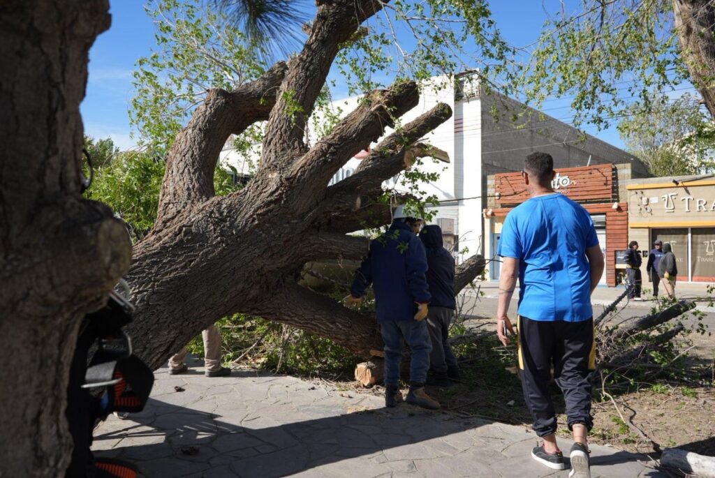 Durante la tarde de ayer, los fuertes vientos provocaron la caída de un árbol en pleno centro de Caleta Olivia. De manera inmediata, personal municipal se hizo presente en el lugar para asegurar la zona y realizar el retiro del ejemplar, garantizando la seguridad de transeúntes y vehículos.
