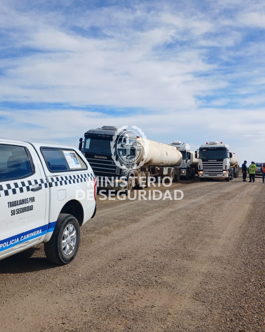 En el marco de los operativos de control que lleva adelante la Policía Caminera en distintos puntos de la provincia, en la jornada de ayer, jueves 16 de abril, se detectaron y retuvieron tres camiones con semirremolque que transportaban agua en condiciones irregulares, en inmediaciones del acceso al yacimiento minero Don Nicolás.