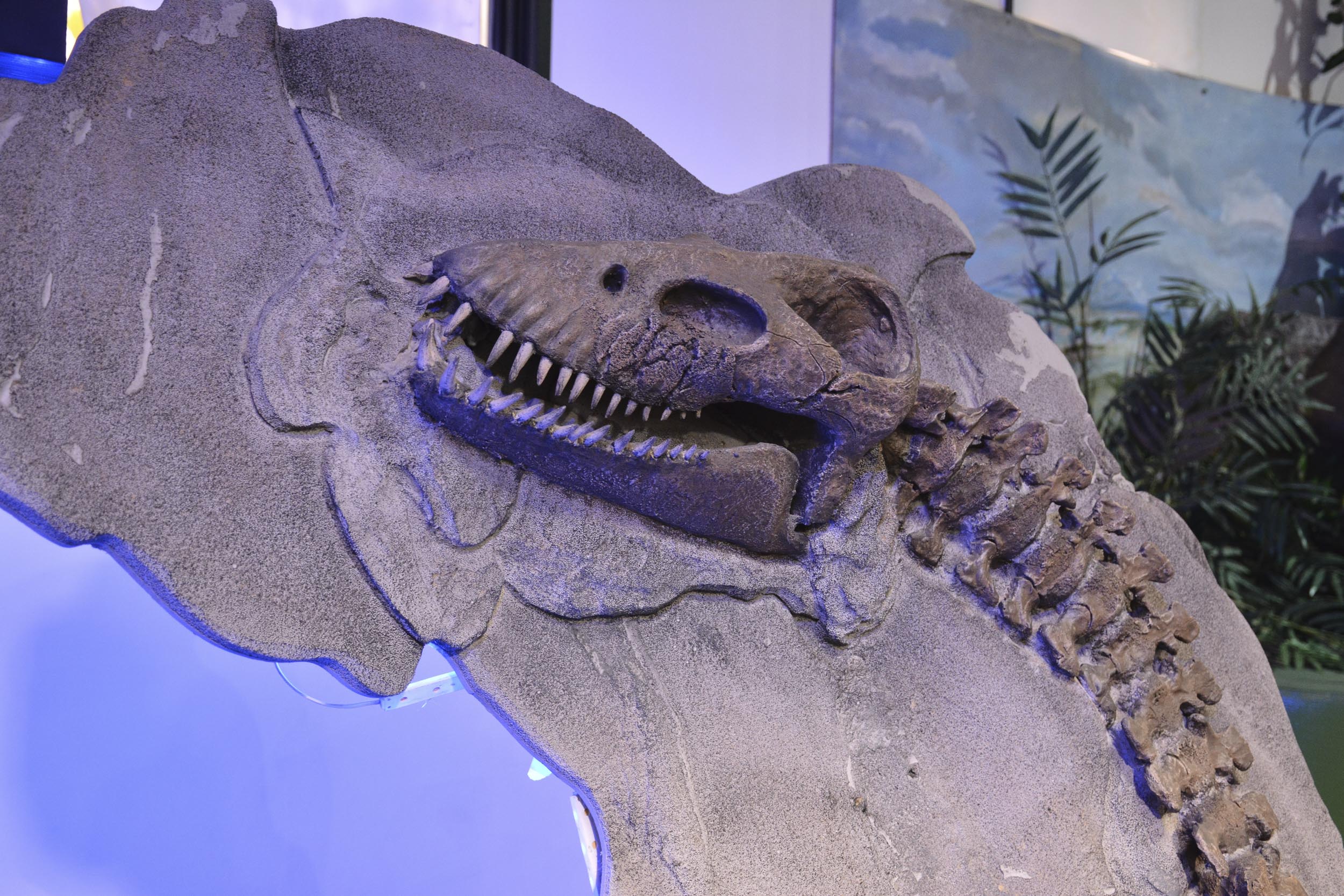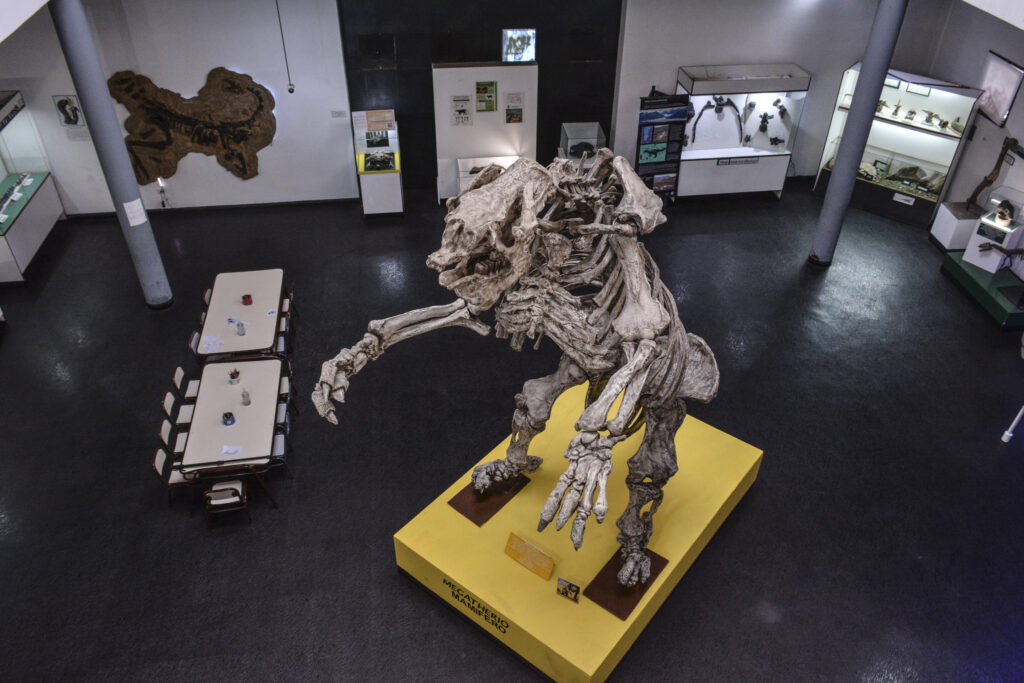 Lo que quisiera decir es que el material que se encuentra expuesto está, en gran parte, conformado por las piezas originales. Está el dinosaurio, el titanosaurio. Y hay megafauna, pero es un calco. Otras piezas que están expuestas, tanto geológicas como paleontológicas, son reales, originales.