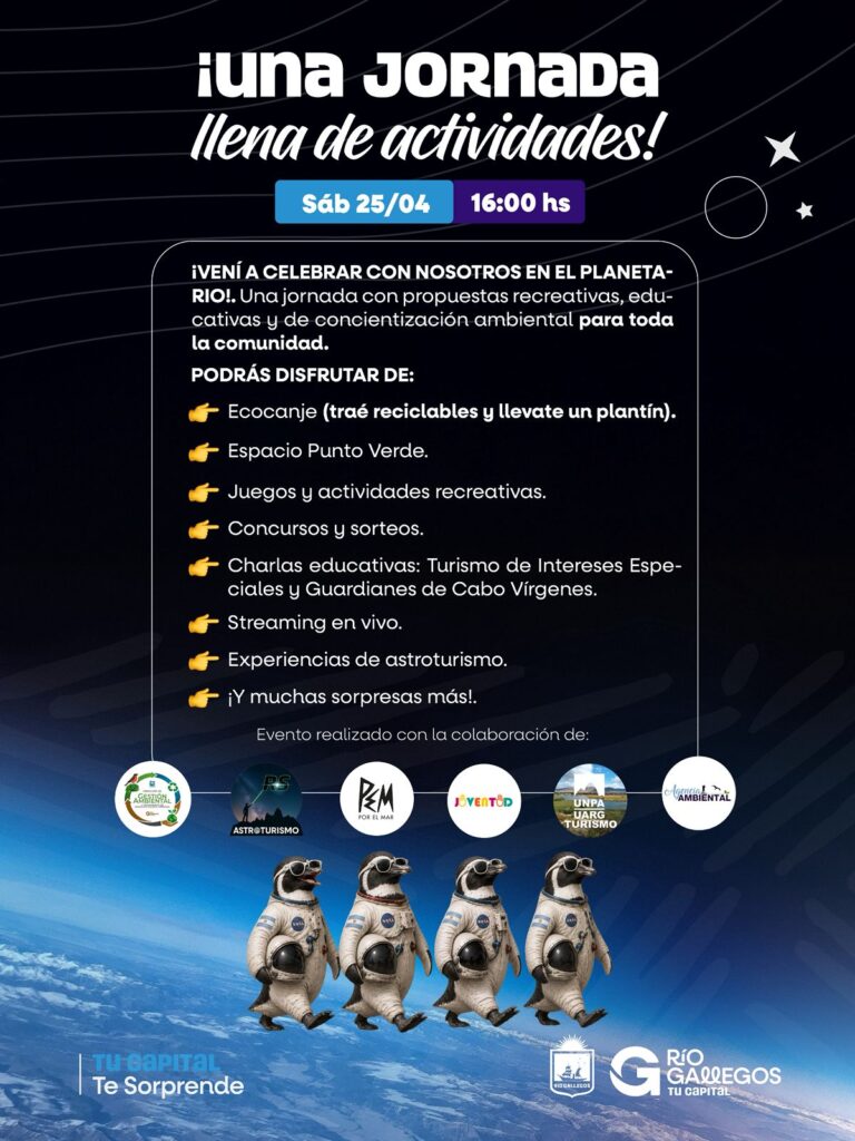 La actividad se organiza de manera articulada con la Agencia Ambiental, la Fundación Por el Mar, la Casa de la Juventud, RS Astroturismo, Ambiente Sur y la Universidad Nacional de la Patagonia Austral (UNPA-UARG), y contará con múltiples propuestas para toda la comunidad.